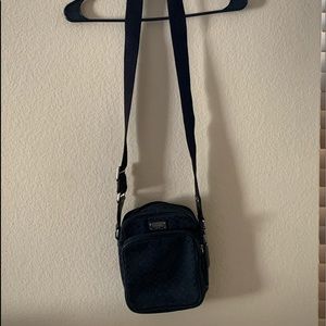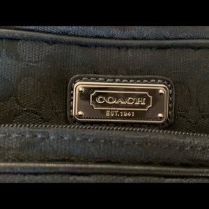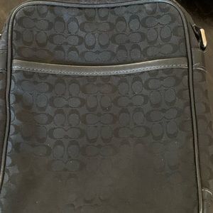 Like New cloth Coach camera bag, leather worn on bottom of bag