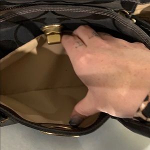 Coach shoulder bag. In like new condition, a tad dirty but not much. No stains, tears or rips. All zippers work and buttons!