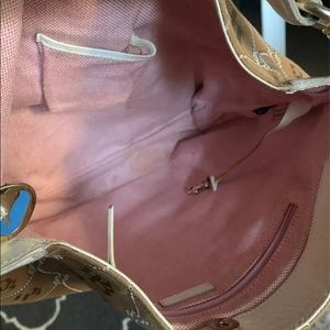 Tan and cream hobo style coach purse. A little wear. Shown in pictures. Still has a lot Of life left.