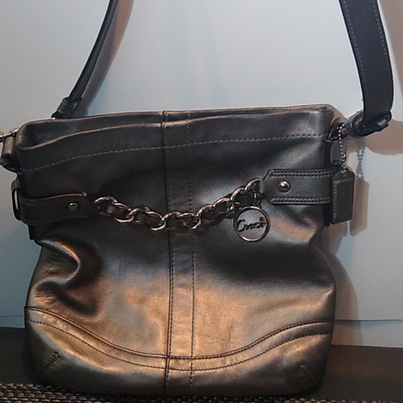 Silver leather normal wear on conner see pictures could use a light cleaning good condition straps good