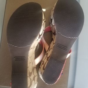 Summer must have it!!! Beautiful coach wedges, like new barely used, no details, comes with a clutch same color, perfect match, no rips, no stains. Smoke free home, ready to ship.