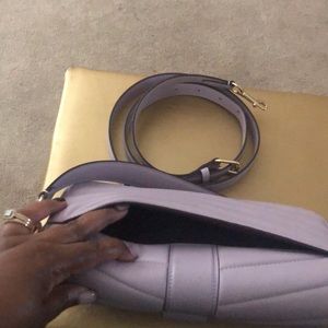Puffy quilted Georgie crossbody purse with interchangeable straps and three separate compartments.