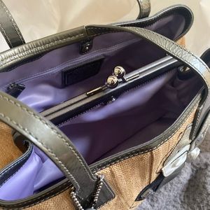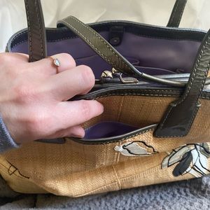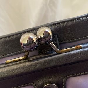 The only wear I can see is a few spots on the inside bottom (leather satin)