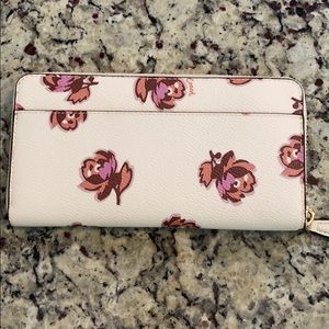 NWT Coach Accordion ZIP Wallet with Floral Print. Holds 12 cards, and has two full-length bill compartments and a coin purse. Has a zip-around closure. Also had an outside open pocket. Approximate measurements: 7.5” (L) x 4” (H) x 3/4” (W)