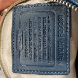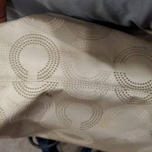 Cute Coach purse. 14 inches long, 8 inches high, 9 inches deep. Some small stains on bottom from use, please see pictures, long strap that detaches. Offers welcome 😁
