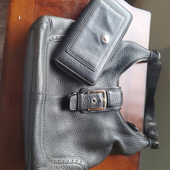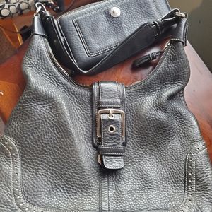 USED COACH LEATHER SHOULDER BAG AND WALLET.