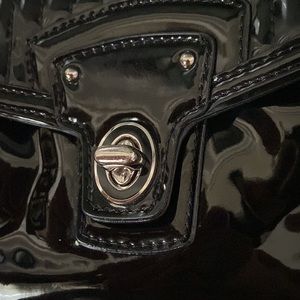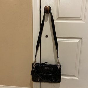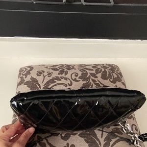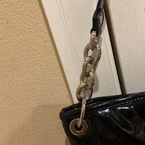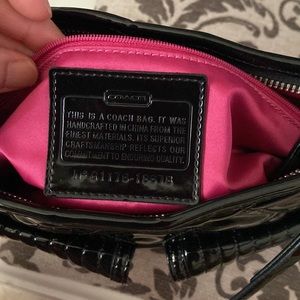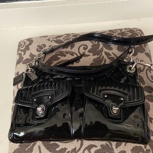 Beautiful patent quilted black Coach bag with two different straps, with the long strap being removable. Please see last picture where the tassel that pull the zip has some peeling.