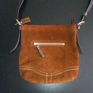 Pretty Genuine Leather, Genuine Suede Multiple Inside Pockets Including 1 Side Pocket With Adjustable Long Strap. NO Flaws Excellent Condition
