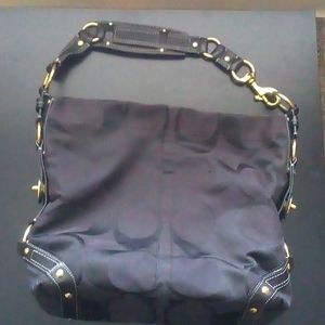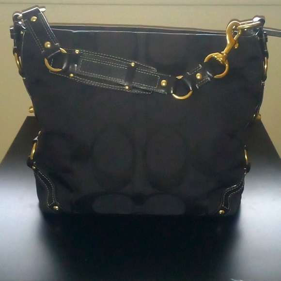 Absolutely Beautiful Large Classy Steady Roomy Coach Purse With Inside Pockets Gold Bulkles Loops/ Chain Which has A Bit Of Wear As Shown In Last Photo