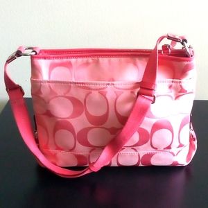 Beautiful Coach Purse With Multiple Pockets Inside And 2 Outside Pockets Front And Back With Adjustable Straps. Excellent Condition You Will Mistake It For New