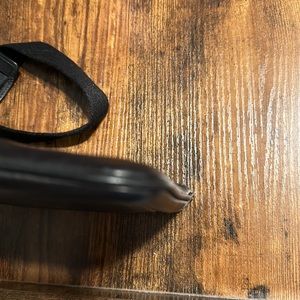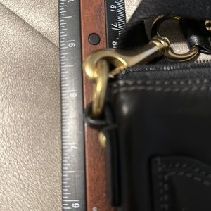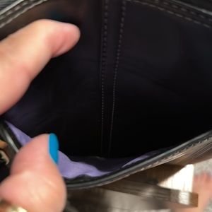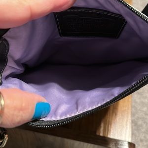 Coach over the shoulder bag it’s leather nice strap Harley used. It’s quick and easy to go when you don’t want to take your nice big purse.