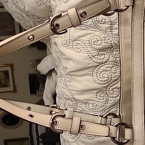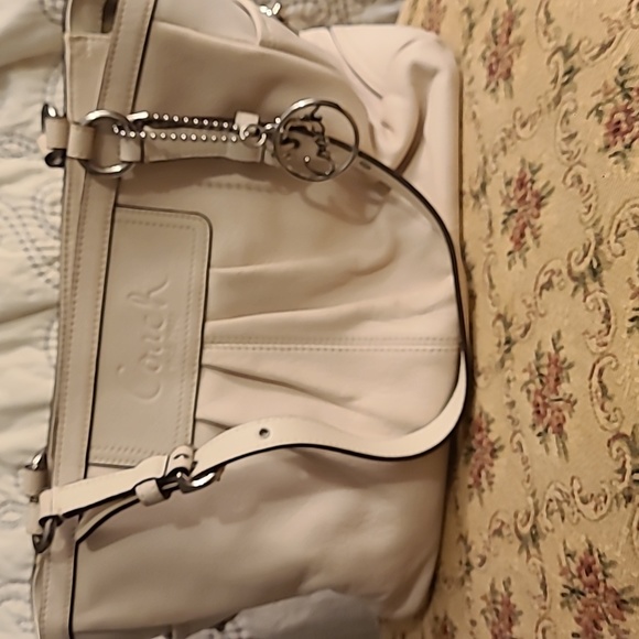 Cream Coach shoulder bag with double straps and zipper close. Excellent condition.