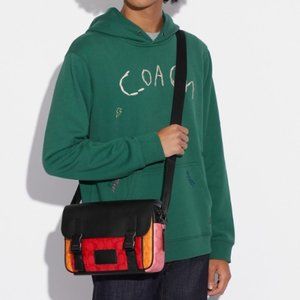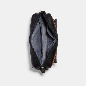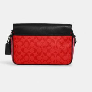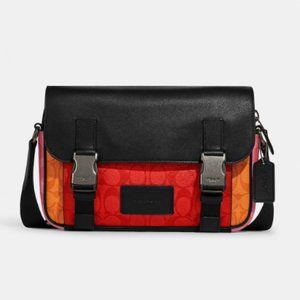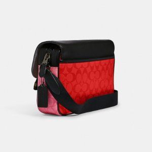 Track Crossbody In Blocked Signature Canvas- Gunmetal Miami Red Multi