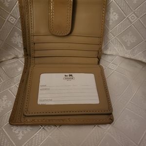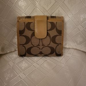 signature coach brown in color used in good condition price tag sticker stain on front card slots coin section I'd holder 4L×4W