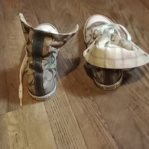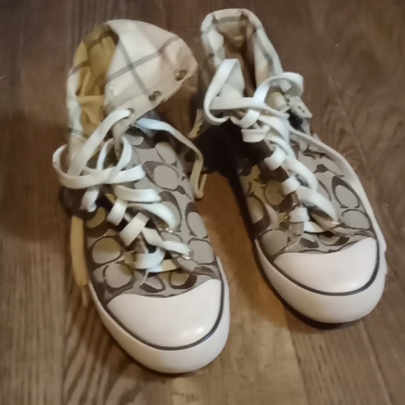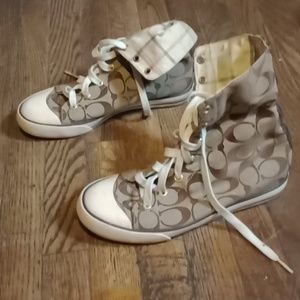 these are Coach sneakers you can wear them two ways either high top or low top there brand new . they are so comfortable I think they're cute I just have too many pairs of shoes so now they're up for sale