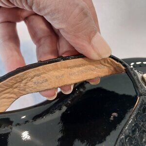Coach 6.5 Strappy Sandal Wedge Cork Black Patent Leather Jorgina Signature Thong. Please see all pictures for item condition and signs of wear and tear. Buy today, will ship next business day.
