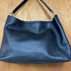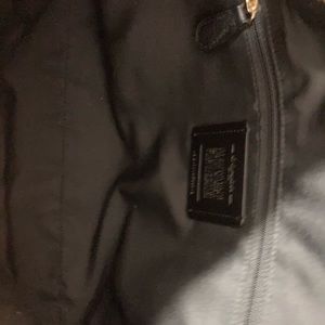 Black coach shoulder bag. Two zipper pockets in front to open plus one zipper pouch inside.