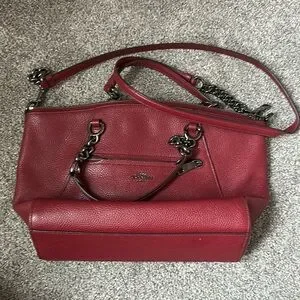 Beautiful dark Red Cross body by coach, it has a lovely dark silver/black embellishments. I got this like probably 4 years ago, I wore it once! Needs to go to a new home where she will get used