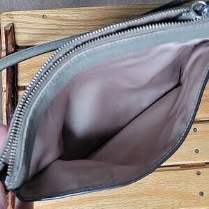 Coach crossbody leather bag. It's just the right size when you dont need a bulky bag. Well loved. Color has worn off in many areas. Scratches on the front logo. Clean inside.