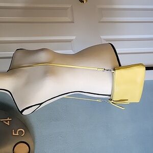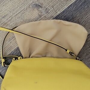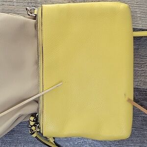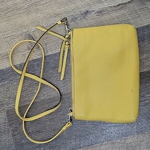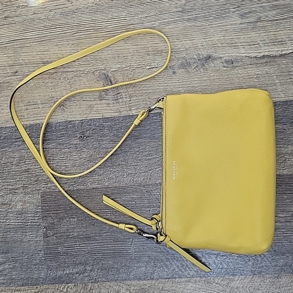 Coach triple zippered leather crossbody bag. Vibrant yellow.