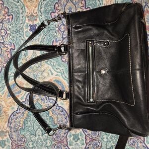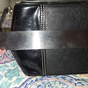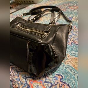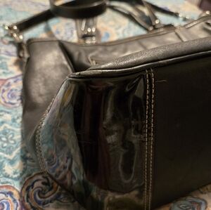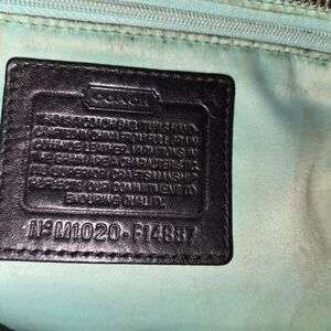 Fairly Big Coach Bag, Black and Mint green. Inside of the bag needs cleaned, I honestly am not sure how to clean it safely, my loss your gain. Many pockets, wrist straps and shoulder strap.