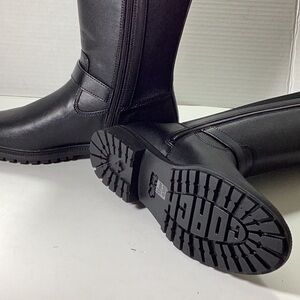 Fabric and man-made leather lining, man-made leather footbed