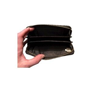 Tan/brown canvas/leather coach wristlet with signature print