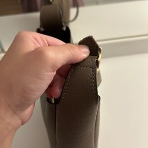 Coach mini hadly pebbled leather this was originally a crossbody bag i converted into shoulder bag so the strap is cut see photos brand new bag color gold/dark stone