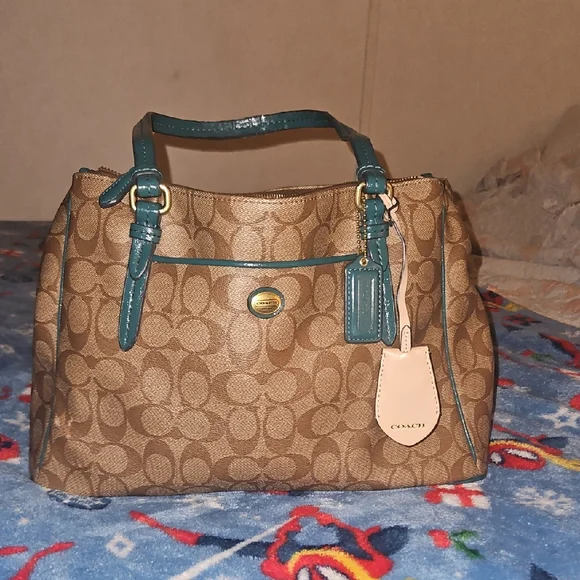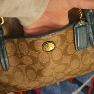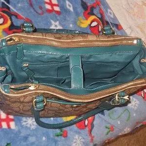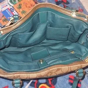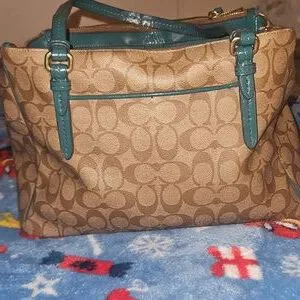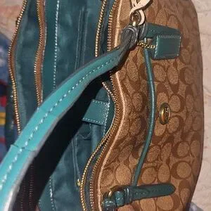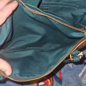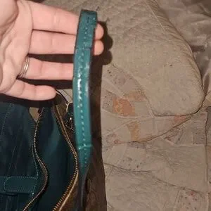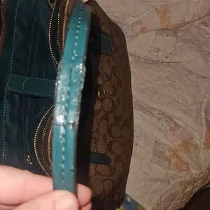 beautiful brown and green no stains but the straps are cracking. tried to post photos ask any questions and offers are welcome ♡