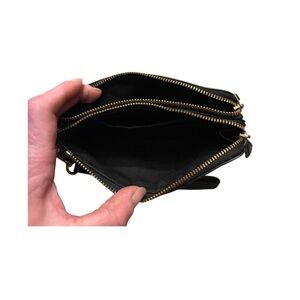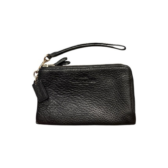 Black,pebbled leather Coach wristlet with 2 zipper pockets excellent condition NWOT