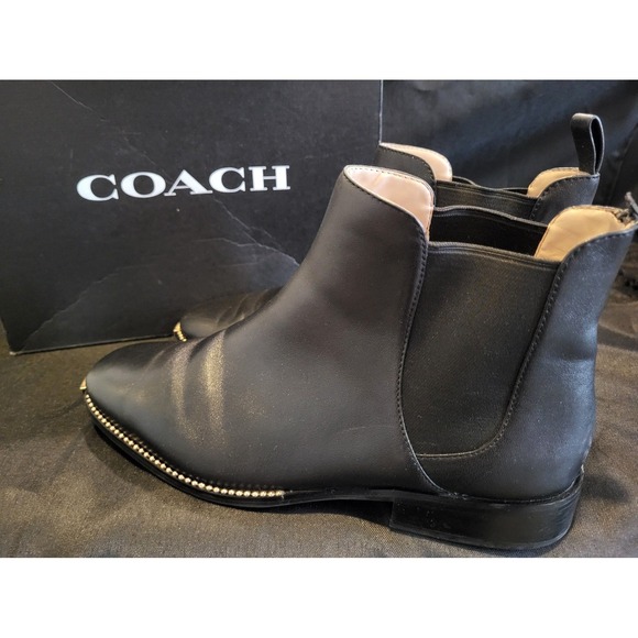 Coach Nicole boots. Good pre-owned condition. They have a few minor issues. In pictures. 1) small place on the right boot. And the pull strap on one. Size is 10b