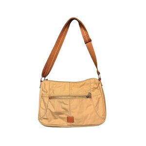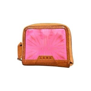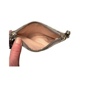 Gray,Coach wristlet with signature print and peach colored lining.There is a mark inside around the edges.It needs cleaned.The outside is in excellent condition