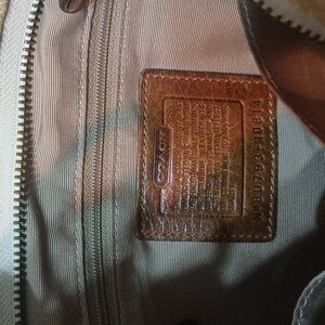 -Brown/tan/cream patchwork canvas w/ leather accents