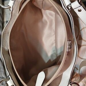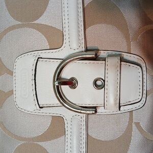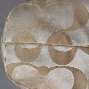 -Khaki/beige jacquard "C" logo fabric w/white leather trim
