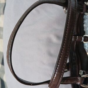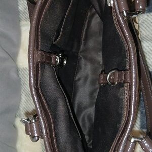 -Dark brown lining w/one zip pocket & two slip pockets; no holes, tears or stains