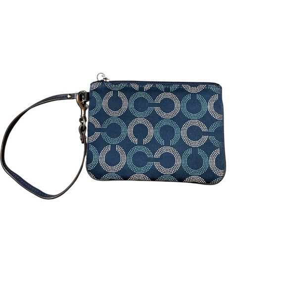 Blue coach wristlet with signature print.The wristlet itself is in great condition it’s just missing the zipper
