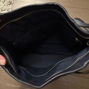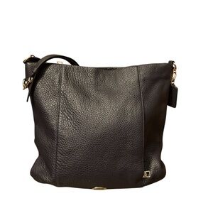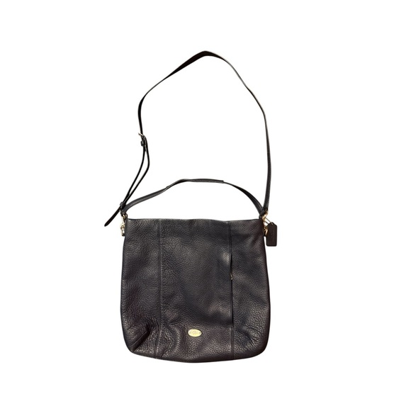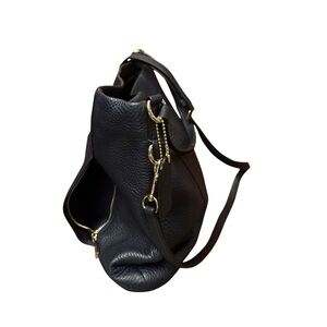 Black Coach Isabelle pebbled leather hobo bag.Comes with removable adjustable crossbody strap.zipper pocket in front no flaws that I can see.Length is 13 inches and height is 12 inches