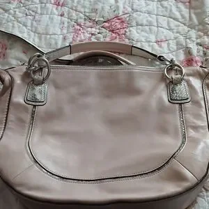 Quality leather purse in great condition. Pale pink color. 15 inches wide and 11 inches high. B-4.