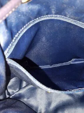 Fabric lined with one zipper pocket and two open pockets. Excellent condition.
