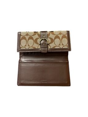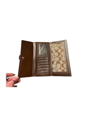 Tan/ brown coach wallet with signature print.leather lining.Excellent condition never used