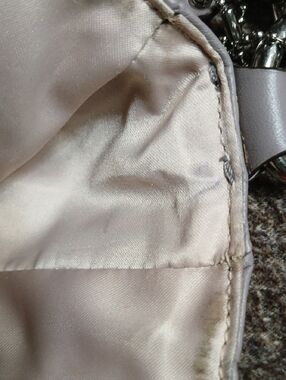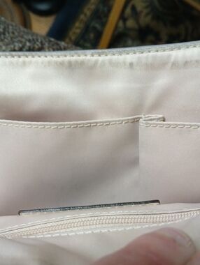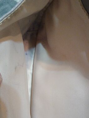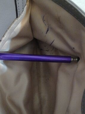 *Please zoom all photos for any exterior wear; Interior lining in hidden front pocket has ink stains and main compartment upper rim has slight but cleanable dark discoloration and possibly light ink marks; I cleaned interior the best I could see, unfortunately my vision is more impaired due to brain tumor wrapped around three main nerves including the optic nerve behind my right ear.