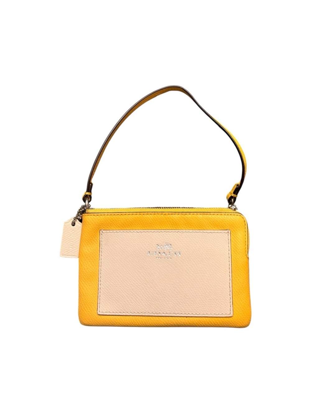 Yellow/white leather coach wristlet great condition