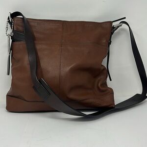 This is a great Coach 70308 Large Zip Crossbody Shoulder Bag. Minor signs of wear, some corner wear can be touched up at any shoe repair. Adjustable removable strap with built in shoulder protector. Large zip back outer pocket and a double slip in pockets on the opposite outer side. Large foible fob of leather and chrome. Cotton interior with authenticity shank and multiple pockets. No odors. No tears. 13” H x 14”W x 2”D with 28” adjustable strap.