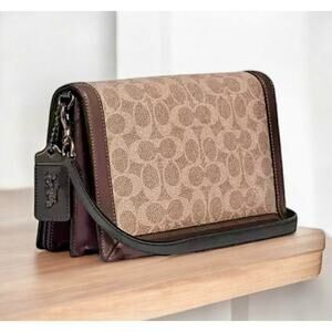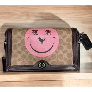 This Coach 73943 Riley In Signature Canvas With Rexy By Yeti One Bag from 2019 is from a special collaboration with Yeti One, a contemporary artist based in China. Featuring Signature Coated Canvas in tan/brown with refined brown /black calf leather trim/strap, this bag is both super stylish and functional with an adjustable/removable strap for clutch, shoulder or crossbody wear. This bag fuses the creative energy of Shanghai with the bold, street style of New York and is a must if you love and collect Coach!