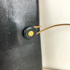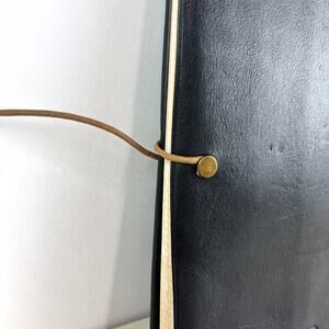 Beautiful supple black leather binder with loop closure. Includes gold foil edge, spiral bound grid paper. Several indentation marks on the leather, please refer to photos. Measures approx 8.25" x 6.25"