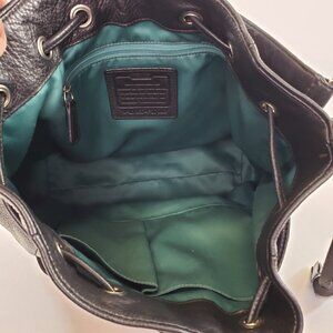 Coach --- AVERY Pebble Leather HOBO Drawstring Shoulder Bag /Purse - with beautiful soft pebble leather, typical of Coach handbags, and emerald green satin lining.