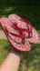 Coach Abbigail Red Flip Flops Sandals White Floral Print Silver Turnlock Hardware