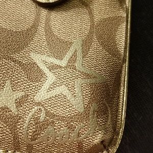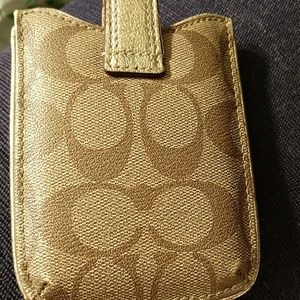 Brown/taupe/ gold Coach monogram purse accessory never used.