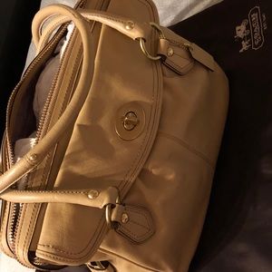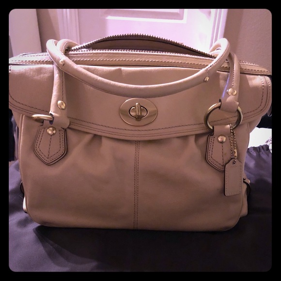 Coach Addison Spectator laptop bag. Beige textured leather. Size: 16”x 11”x 5”