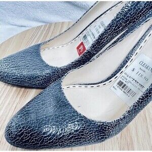 Coach Adina Crackled Metal Leather Stacked Heels Size 9.5 Us